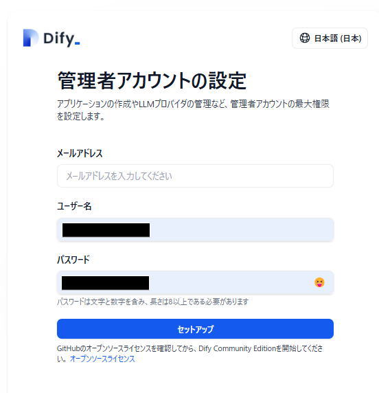 Difyはオープンソースで提供されており、クラウド環境 (Web版)利用の他にローカル環境にインストールしてDocker で使うことが可能です。