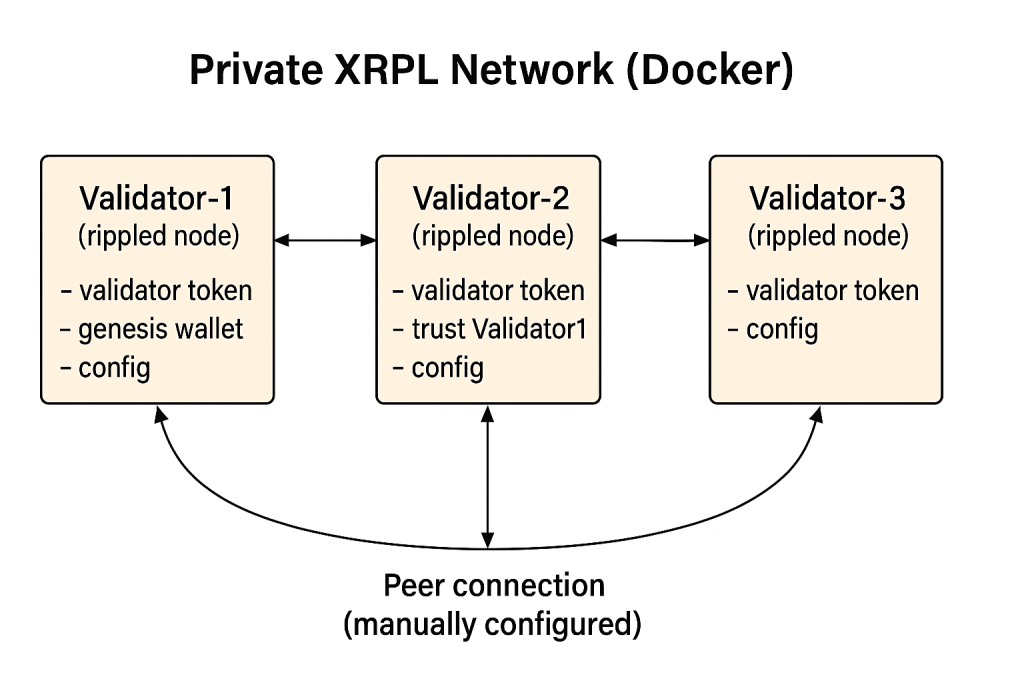 プライベートネットワークとは、公式のメインネットとは切り離され、自分のPC上だけで動作する閉じたXRPL環境です。