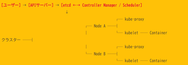 | Control Plane | クラスター全体を管理する中枢。 API サーバー、スケジューラー等から構成。 |